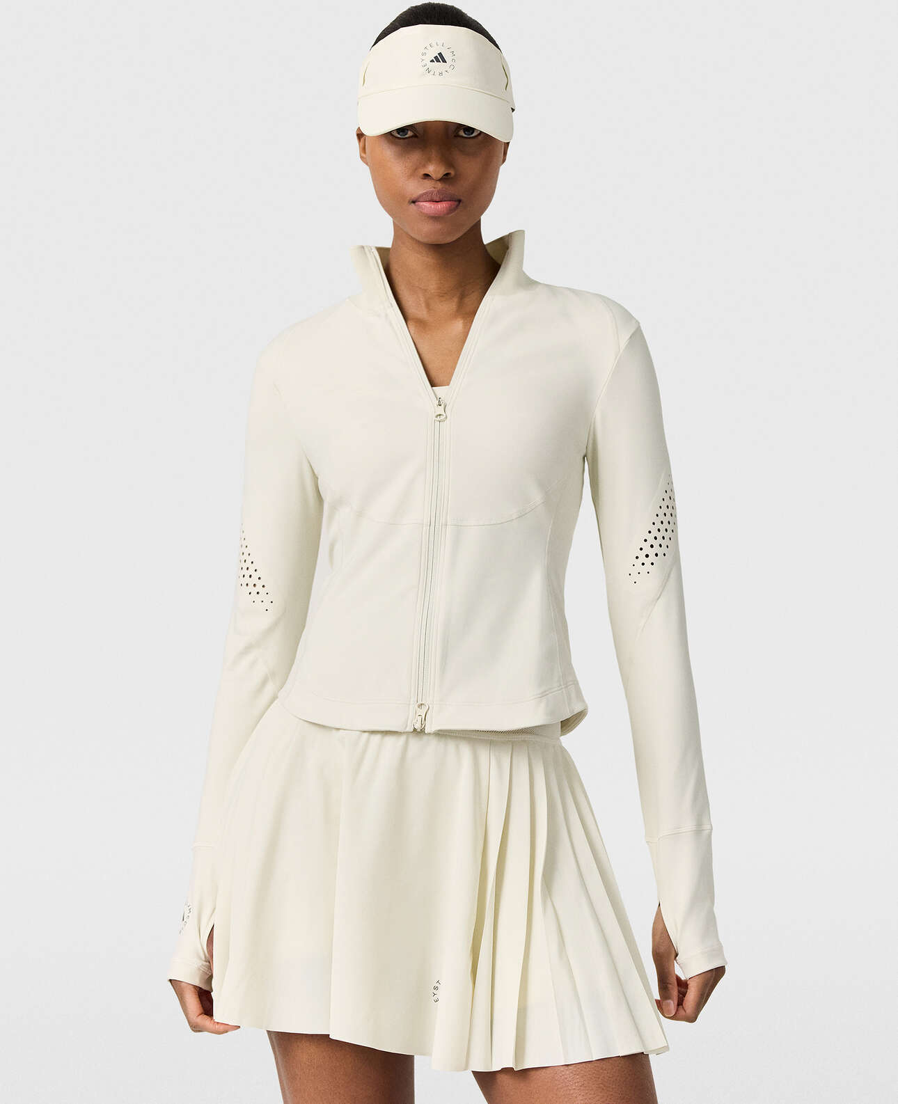 A neutral colour palette and sharp cutlines gives this long-sleeved training jacket a high-vibration feel. The training jacket is crafted from adidas' Primegreen fabric, made with 79% recycled materials, detailed with striking panelling all-over.