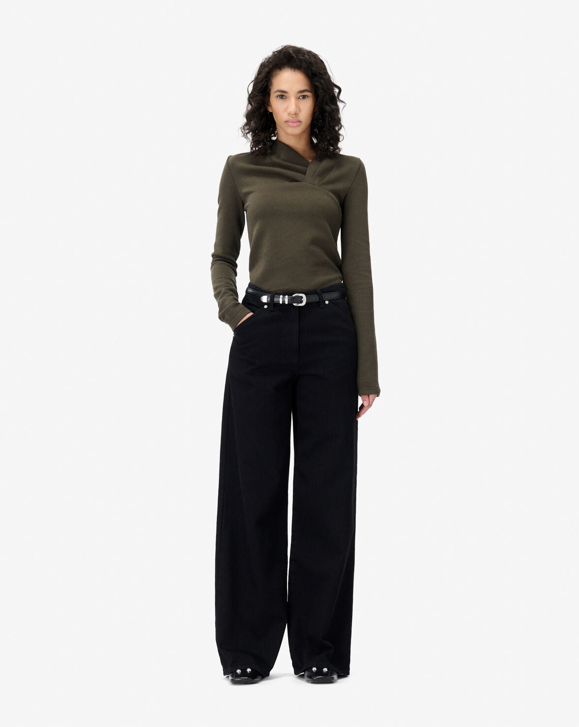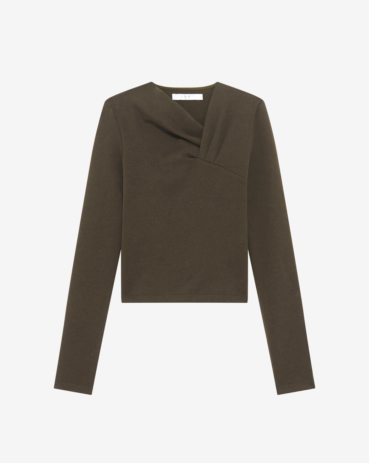MALA asymmetrical top. Pleated details on the front and fitted cut.