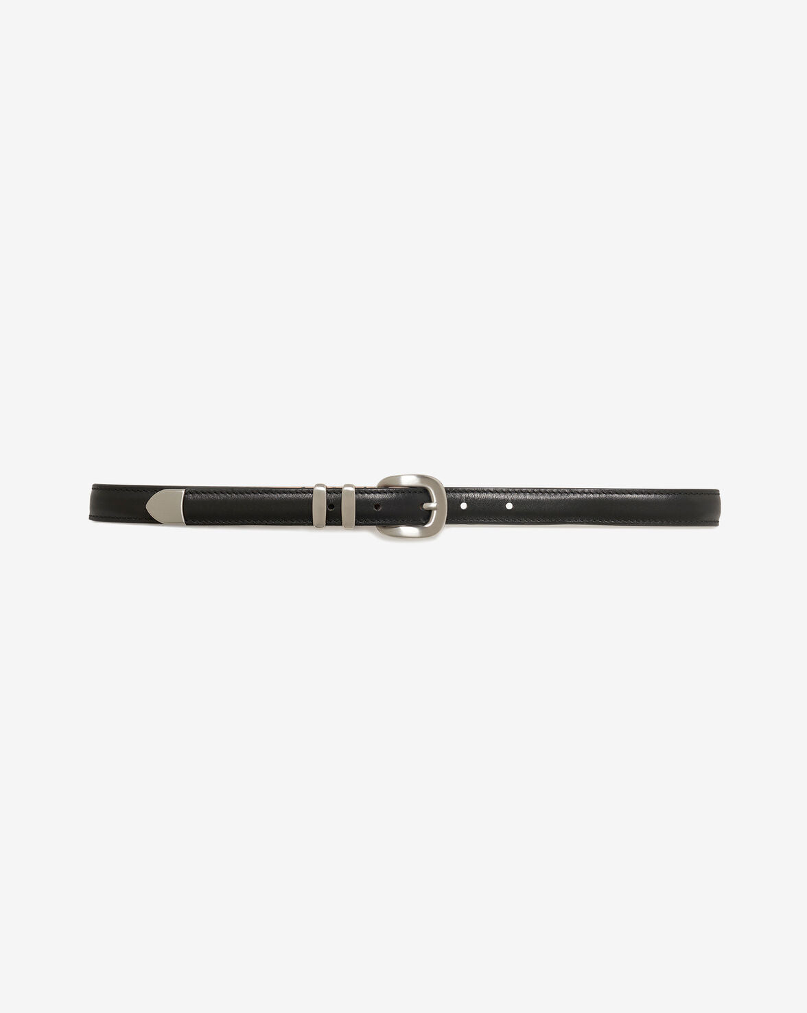 COOL FLAT BN leather belt. Silver-plated buckle and double loops.
