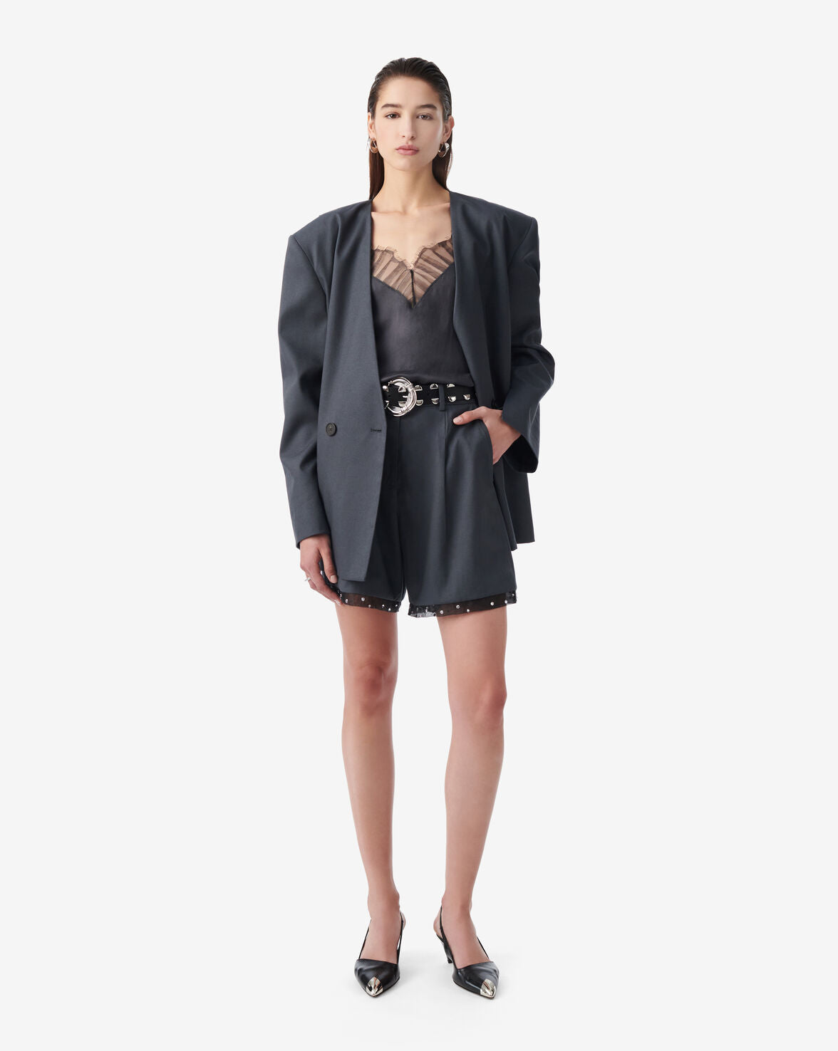 SABRINE V-neck blazer. Cross-over detail at the back and two-button closure.
