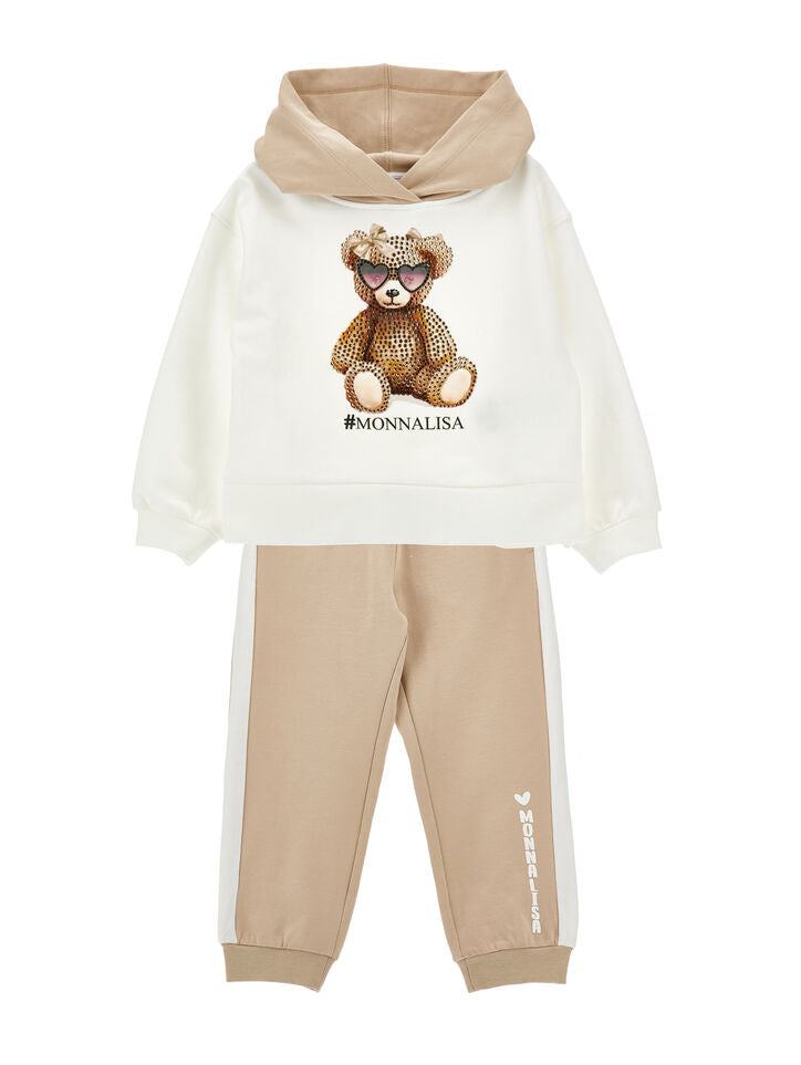 The perfect set with the adorable teddy bear is ideal for leisure time. Easy to wear thanks to the hood and jogger pants design, it offers optimal comfort for everyday play. Perfect for days at the park or an afternoon at home.
