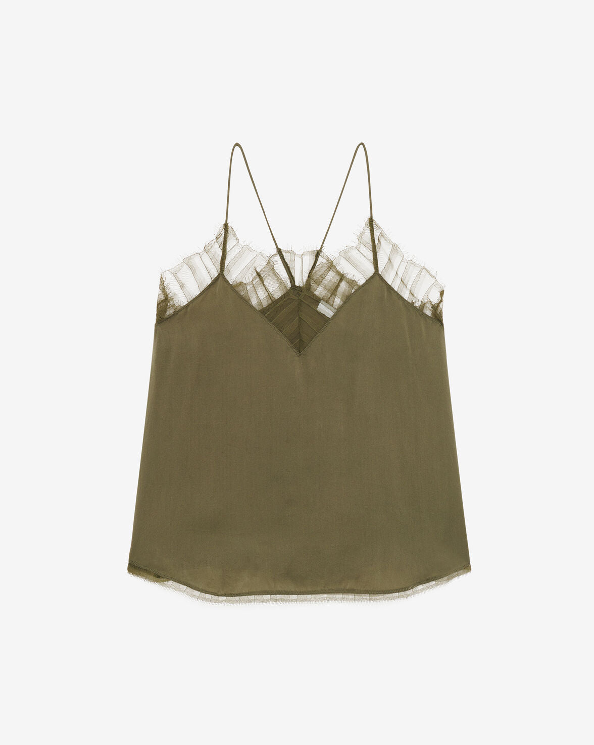 BERWYN silk and lace camisole. Thin straps and lace neckline.