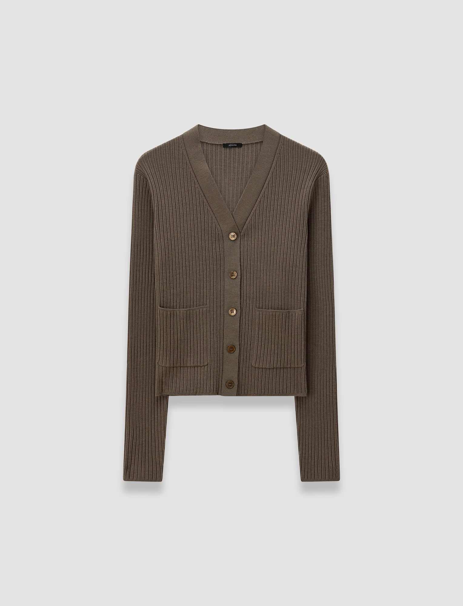 The Merino Rib Knit Cardigan is a slim fit, short cardigan, crafted from a fine Italian merino wool which has a smooth hand feel. This essential style is ribbed delivering lightness and stretch.