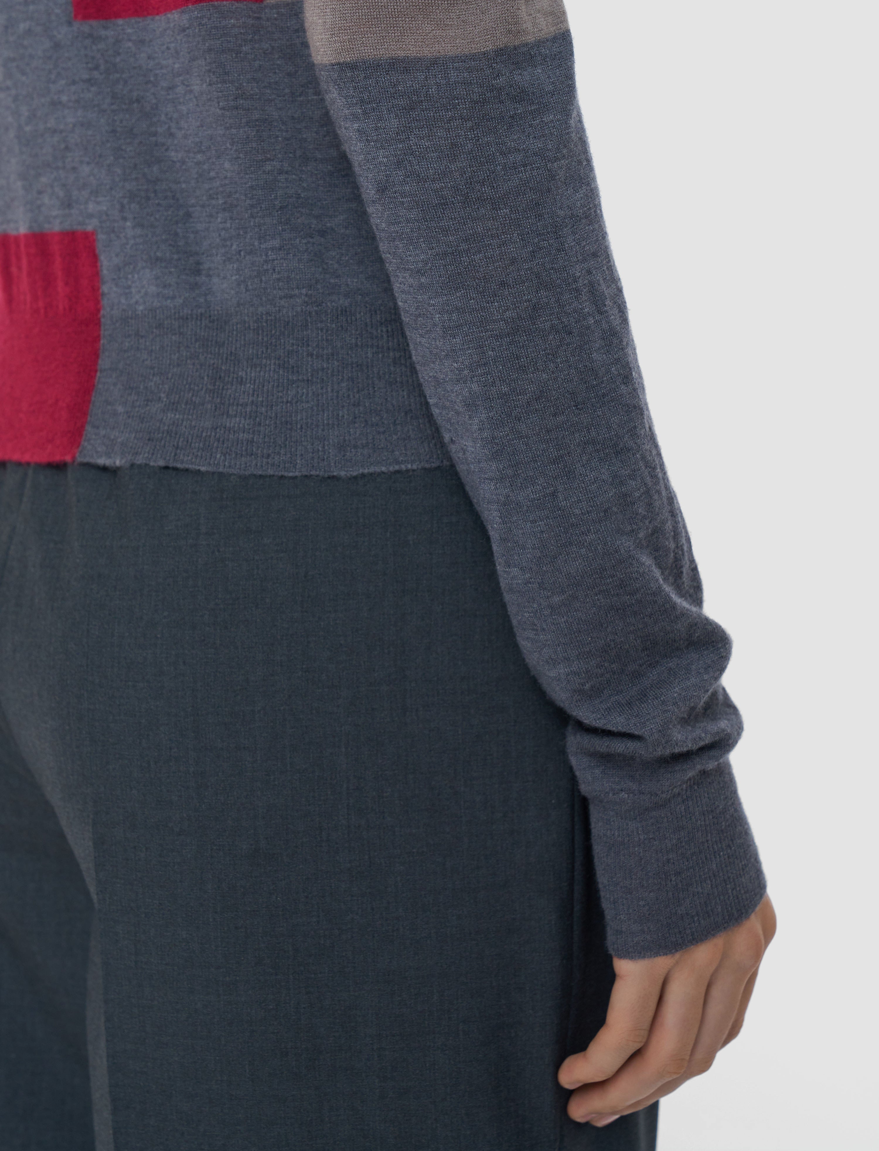 The Cashair Round Neck Jumper is a regular fit, lightweight knit jumper, crafted from 100% cashmere. This JOSEPH signature knit is soft, delicate and semi sheer. It features artwork squares in constrasting colours.