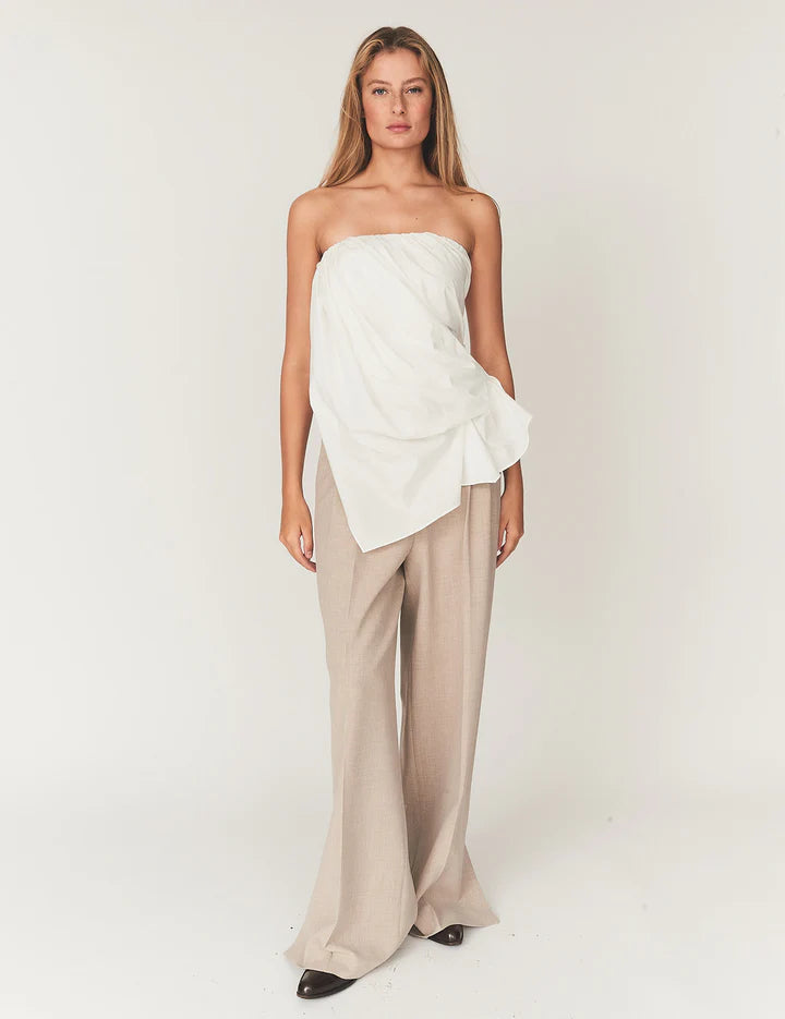 THE BAZAAR BUSTIER HIGHLIGHTS THE NECKLINE WITH SOFT STRUCTURE. DESIGNED AS A DRAPED OFF-SHOULDER BUSTIER, IT COMBINES FLUID MOVEMENT WITH A CONFIDENT, SCULPTED SILHOUETTE.