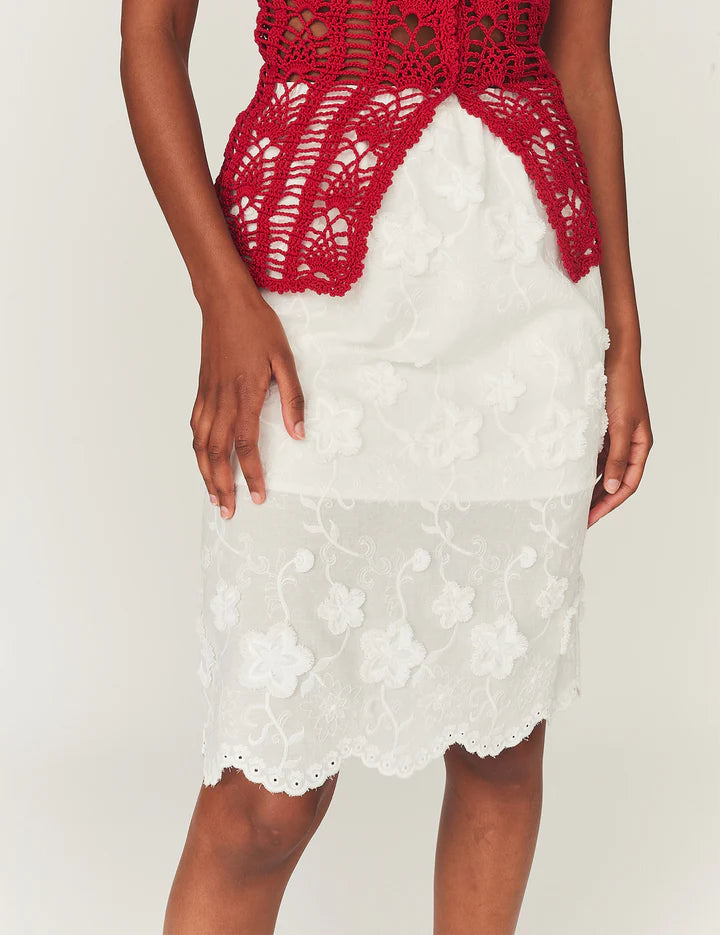 THE FLEUR SLIP SKIRT IS A REFINED PIECE WITH TEXTURED DETAIL. FEATURING TACTILE EMBROIDERY, THIS SLIP SKIRT OFFERS A SLEEK SILHOUETTE WITH SUBTLE, FEMININE ACCENTS.