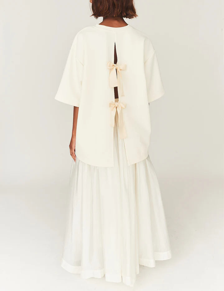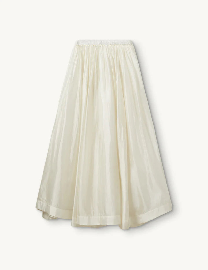 THE GILIAN VOLUME SKIRT IS A STATEMENT PIECE FULL OF MOVEMENT. A LONG, VOLUMINOUS SKIRT LAYERED WITH TULLE THAT CREATES DRAMA AND TEXTURE, OFFERING A PLAYFUL YET ELEGANT SILHOUETTE.