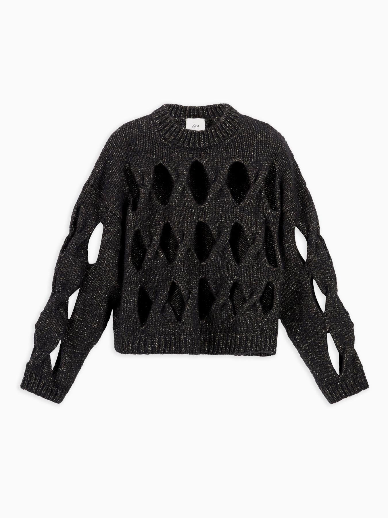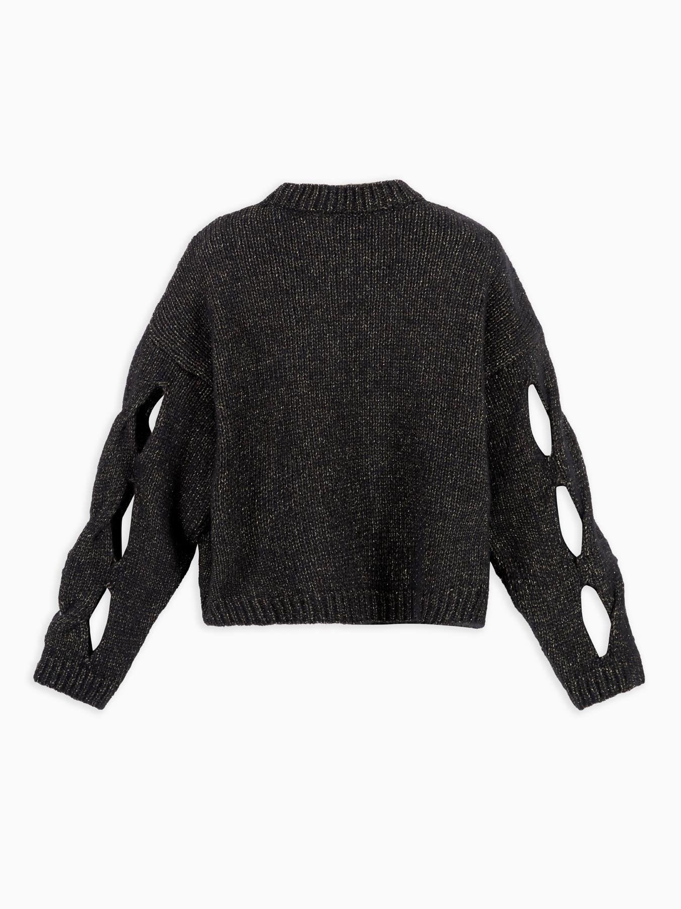 Cut-out crewneck sweater in alpaca / lurex, details on the front and on the sleeves, loose fit