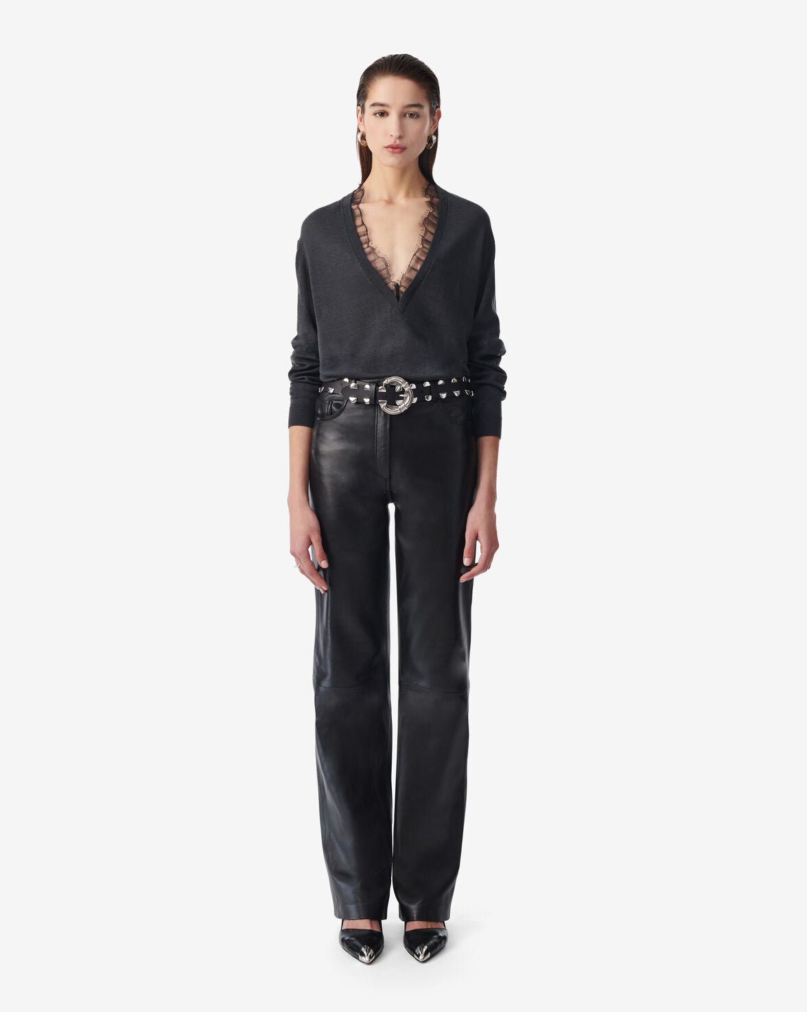HABY sweater in a wool blend. V-neck and tone-on-tone lace trim.