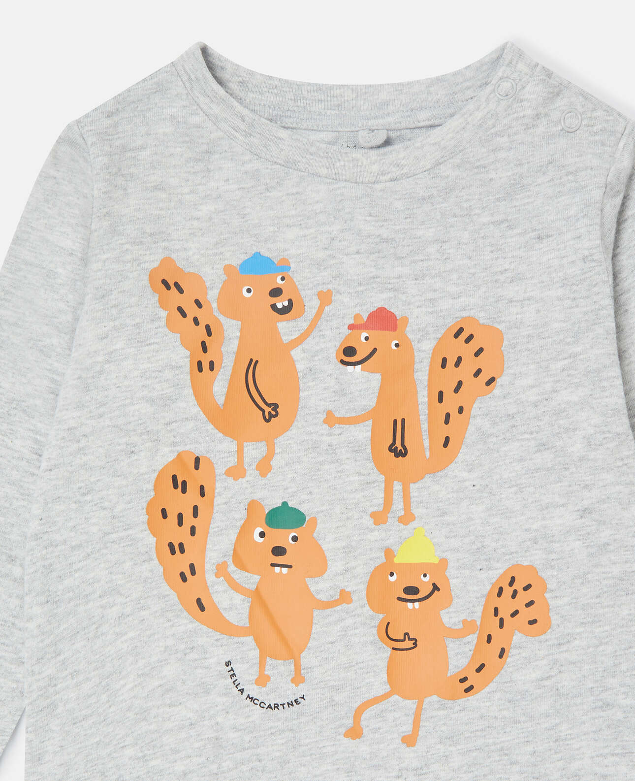Animals are friends, not fashion! Our latest Stella Kids sustainable luxury childrenswear collection includes chummy, cheeky squirrel faces printed on this organic cotton long-sleeve top. Pair it with the coordinating joggers.