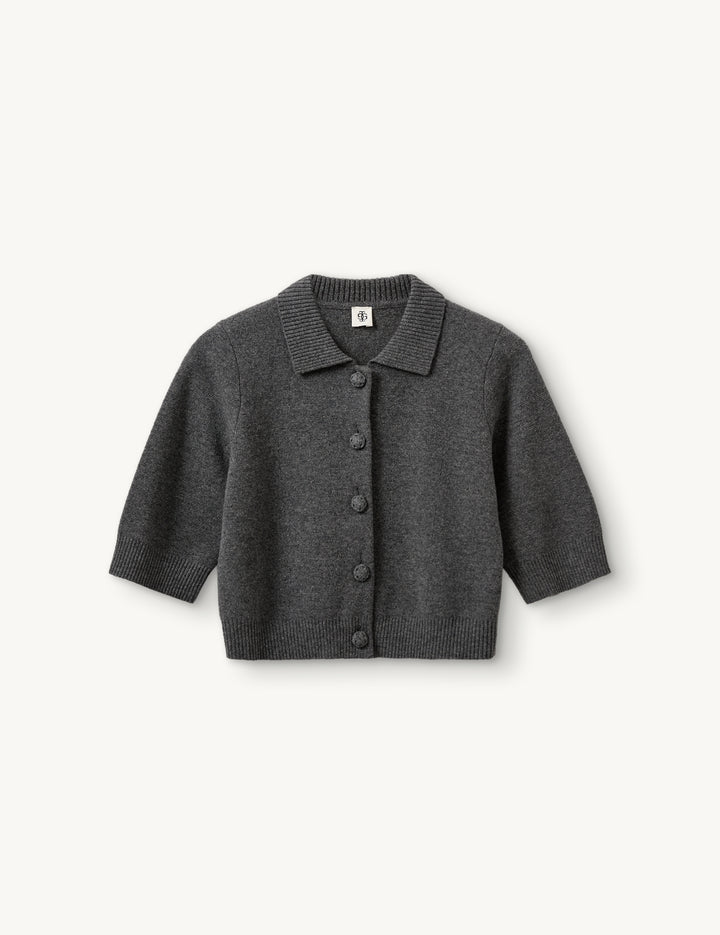 THE COMO SHORT CARDIGAN IS A SLIGHTLY CROPPED, ELEGANT PIECE CRAFTED FROM A SOFT WOOL-CASHMERE BLEND. FEATURING A CLASSIC COLLAR AND BUTTON ROW, IT OFFERS A VERSATILE LOOK PERFECT FOR BOTH CASUAL AND SOPHISTICATED OUTFITS.