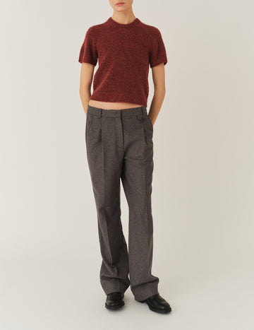 A COZY TOP WITH A SLIGHTLY CROPPED SILHOUETTE. CAN BE STYLED WITH ANY STYLE OF PANTS FOR CREATING A CASUAL OR CHIS LOOK.