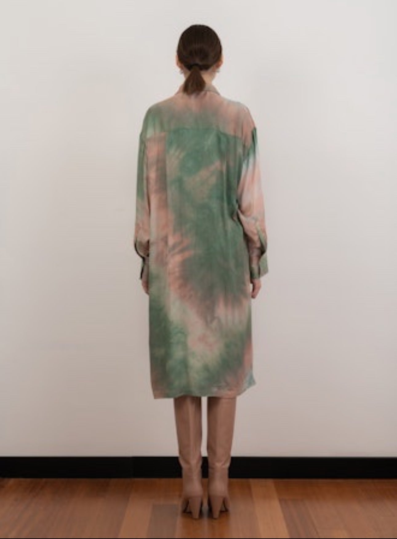 Long-sleeved printed shirt dress
