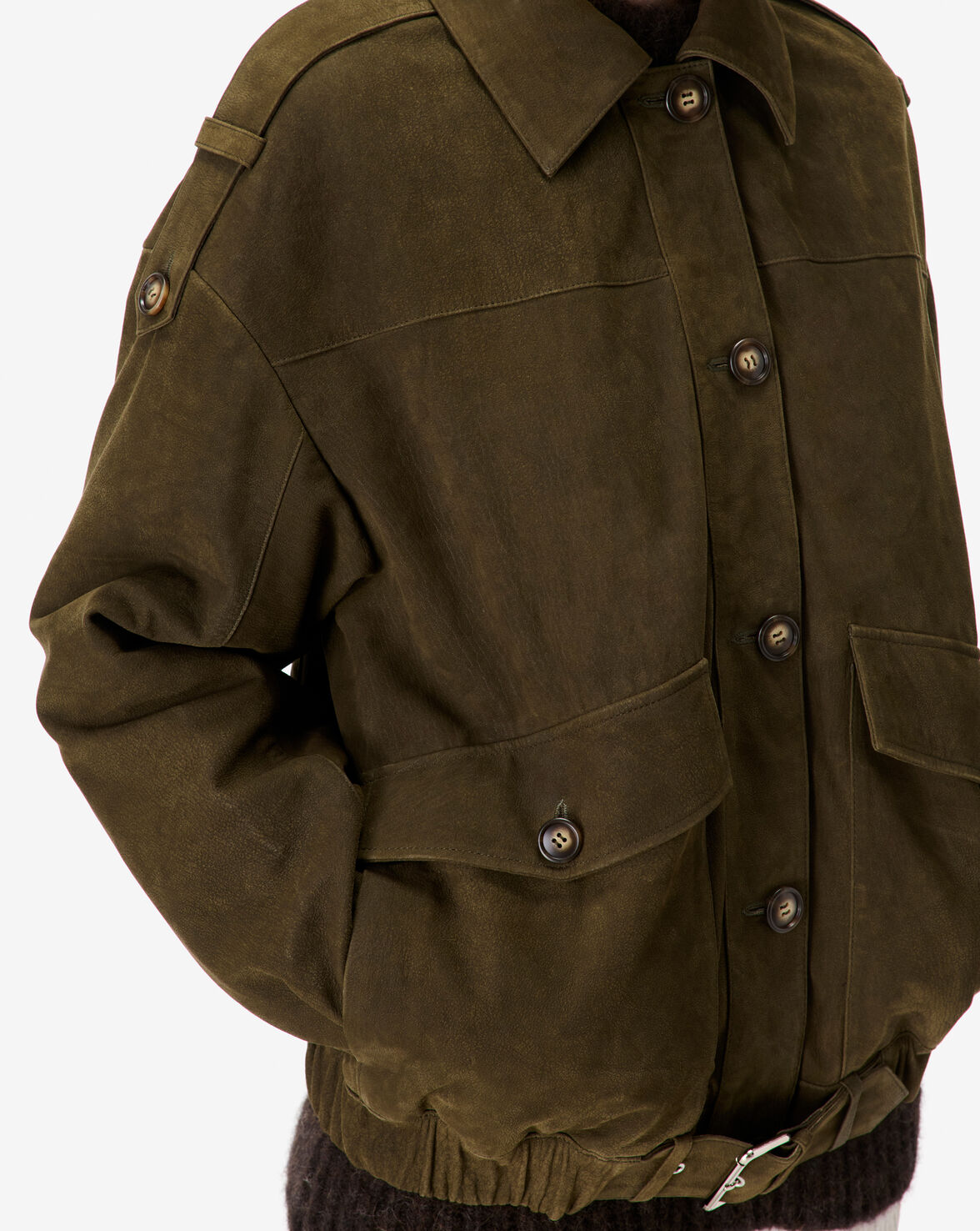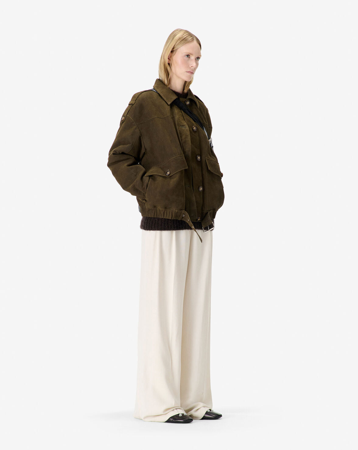 BARRIE suede jacket. Oversized cut with dropped shoulders and button closure.