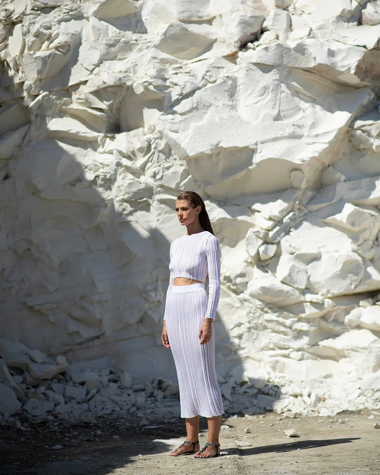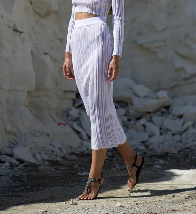 White midi knitted skirt in white colour amazing for beachwear and all day wear.