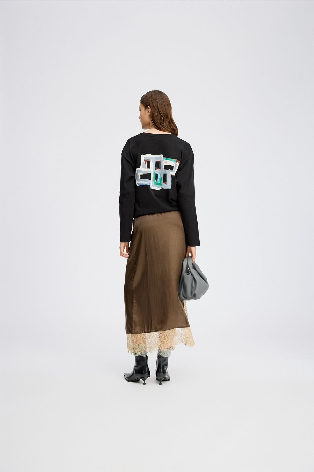 Skirt with a beautiful lace detail along the hem and an elegant, asymmetric design that drapes beautifully, featuring an elastic waistband for an easy fit.