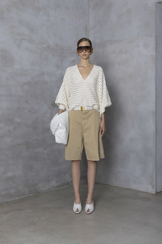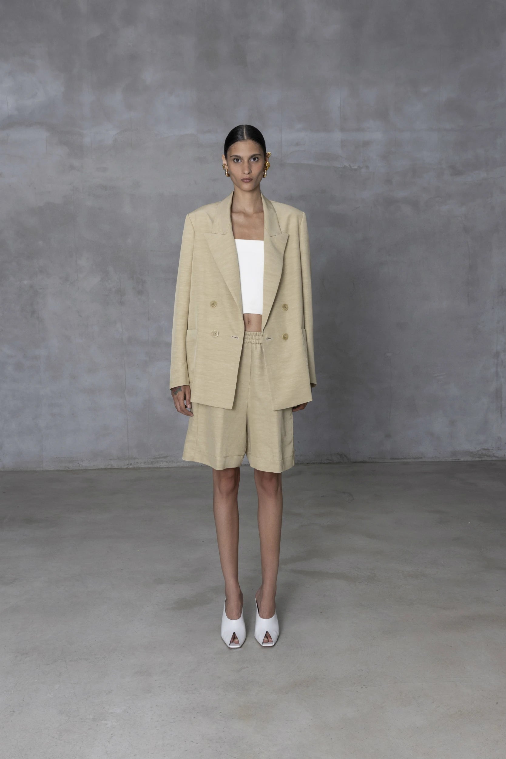 Bermuda shorts in viscose and linen blend, elastic waistband, pockets.