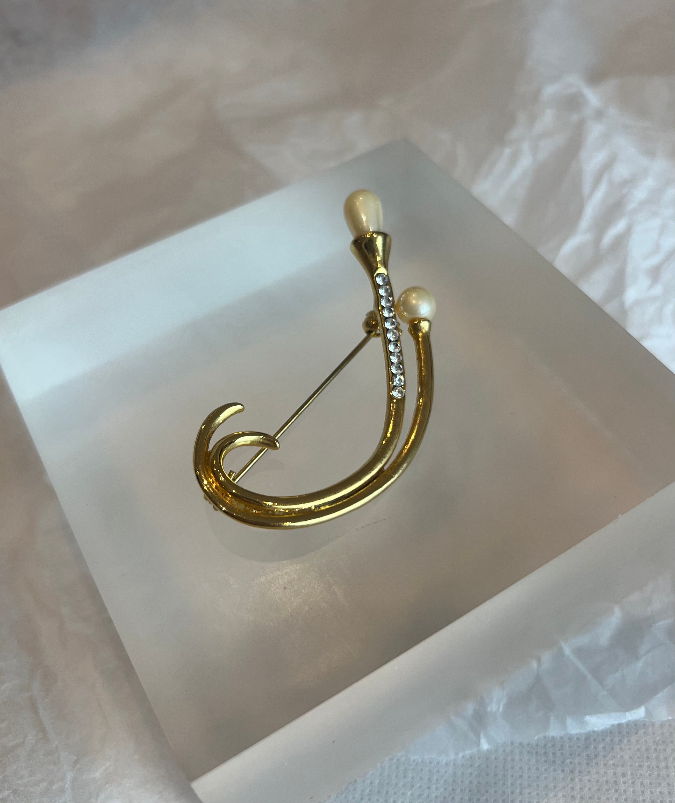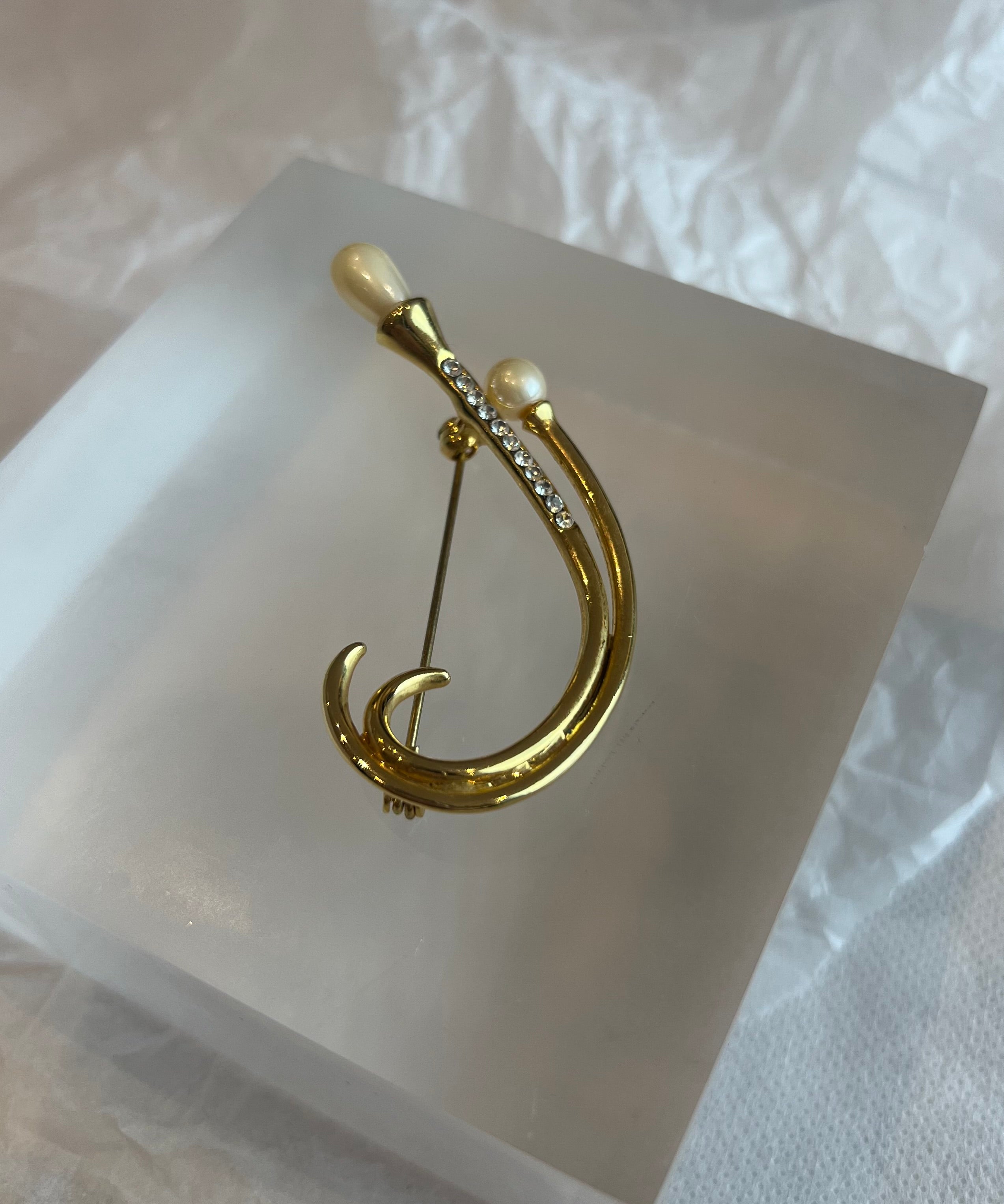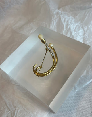 Pearl With Rhinestone Brooch