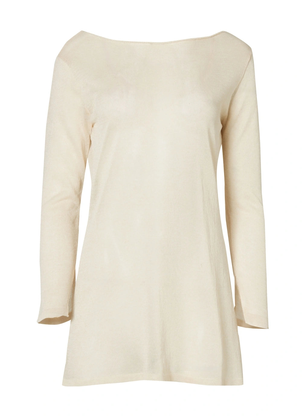 Short knit dress in semi-sheer fabric with side slits.