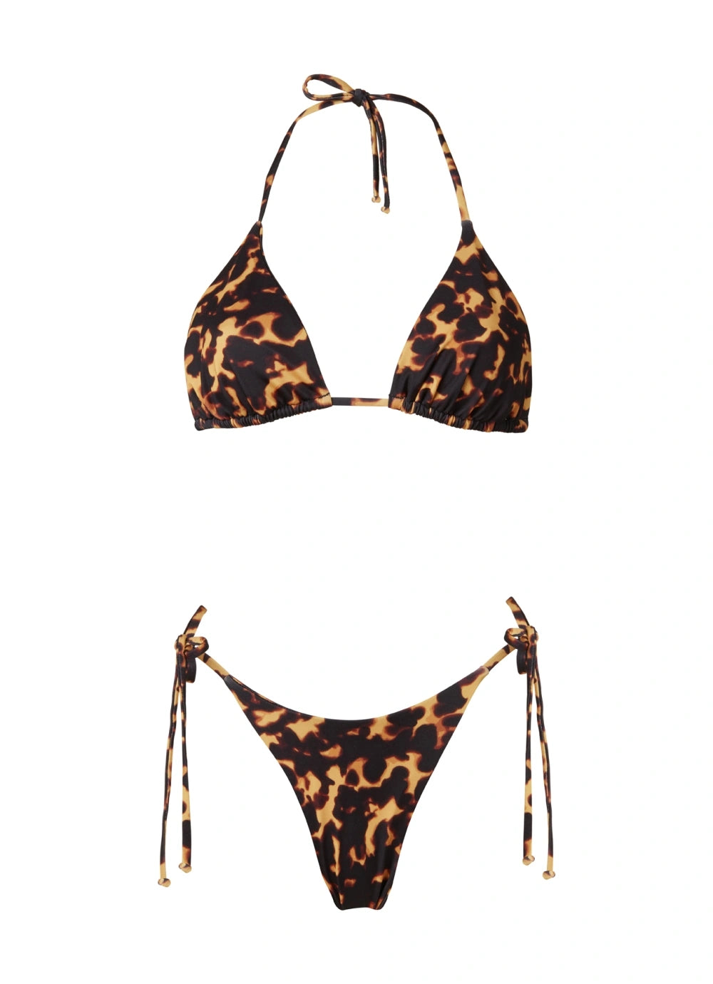 A minimal triangle bikini designed to be stylish and supportive. Self-tie halter neck top and bottoms.