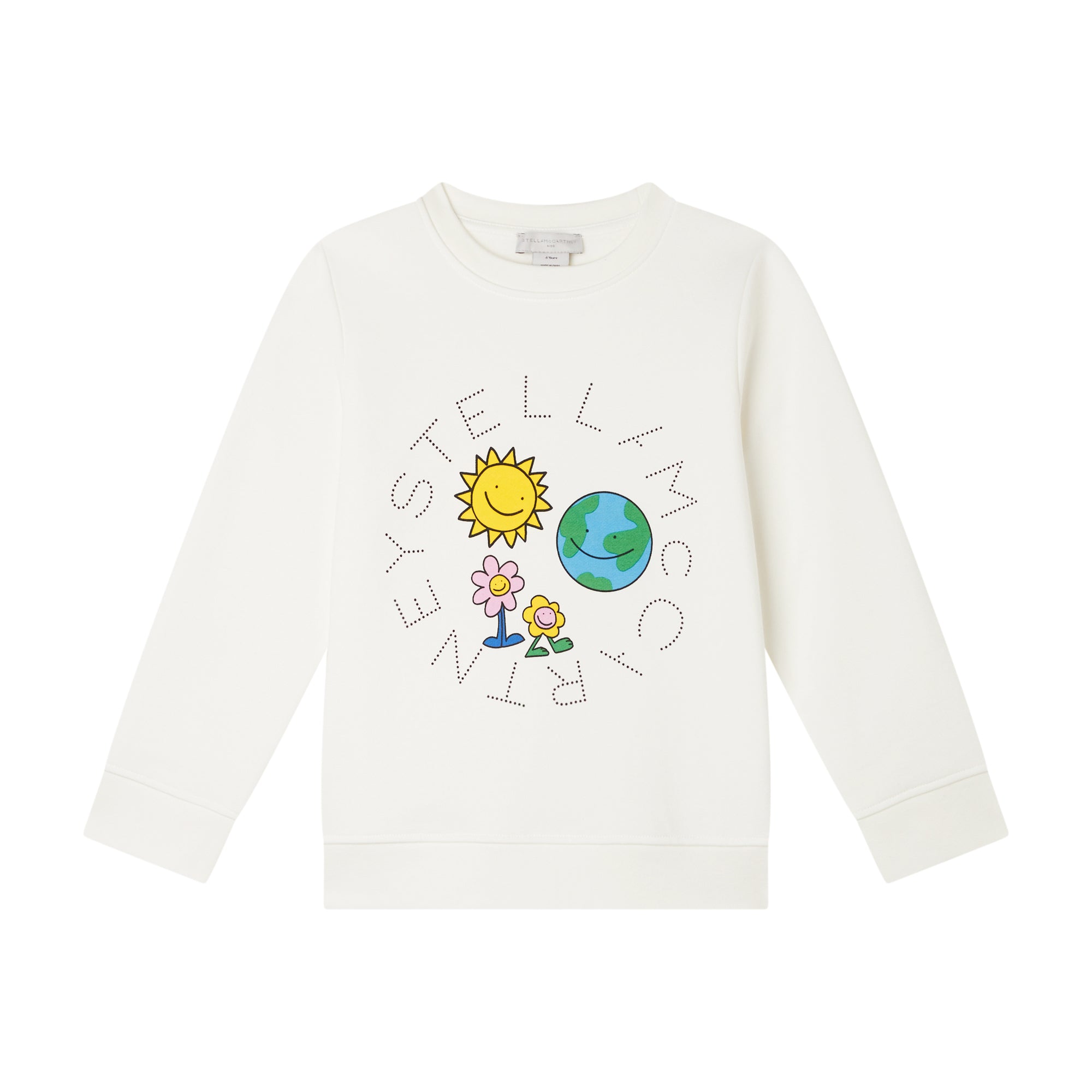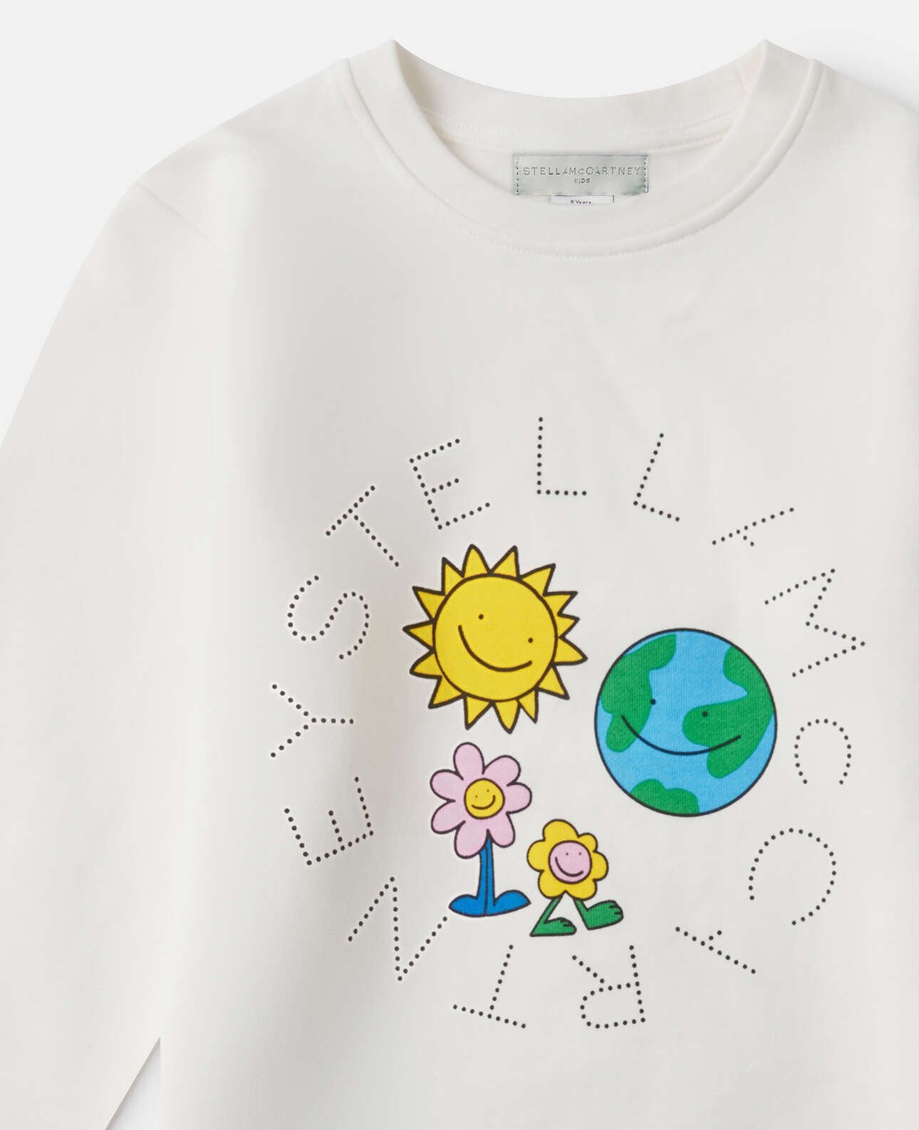 This crewneck sweatshirt is made from soft organic cotton. For Autumn Winter 2025, Stella McCartney Kids is inspired by the love we have for our one shared home – Mother Earth. Smiling flowers, hearts and other earthy friends beam across a collection crafted from 96% conscious materials.