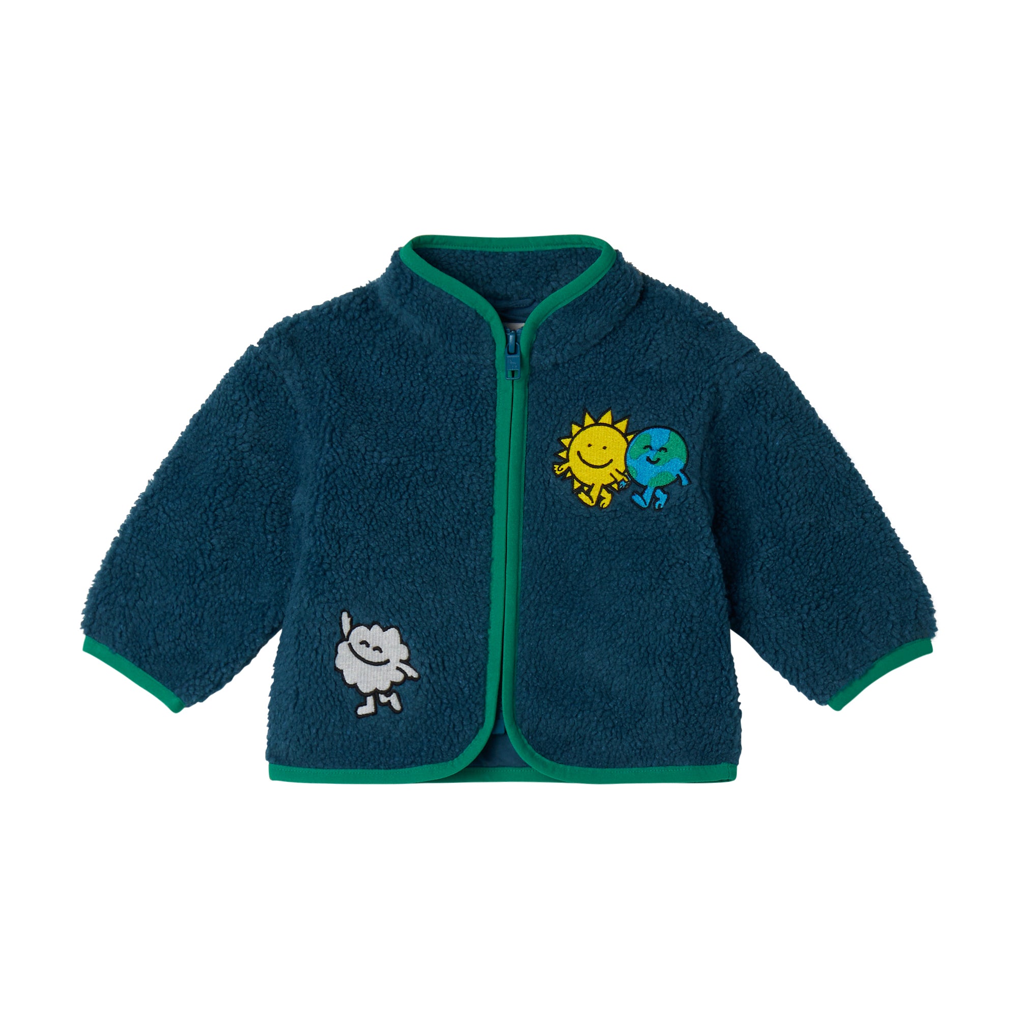 This fleece is made from recycled polyester. For Autumn Winter 2025, Stella McCartney Kids is inspired by the love we have for our one shared home – Mother Earth. Smiling flowers, hearts and other earthy friends beam across a collection crafted from 96% conscious materials.