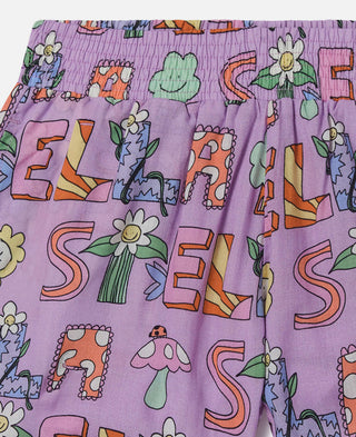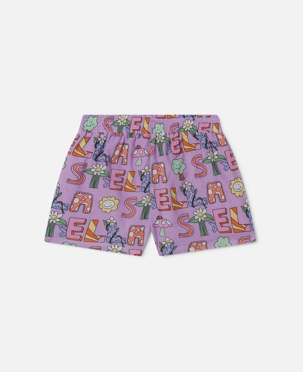 For Spring Summer 2025, Stella McCartney Kids ventures into the magic and mischief of the woodlands – with fairies, frogs and fun forest friends across a collection crafted from 96% conscious materials. These elasticated shorts are made from organic cotton jersey.