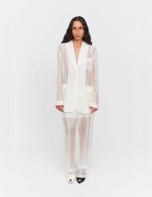 THE GILIAN BLAZER IS AN OVERSIZED, SHEER BLAZER DESIGNED FOR EFFORTLESS SOPHISTICATION. WITH ITS RELAXED YET TAILORED FIT, THIS VERSATILE STAPLE ADDS A POLISHED TOUCH TO ANY WARDROBE.OUTER / 90% VISCOSE 10%