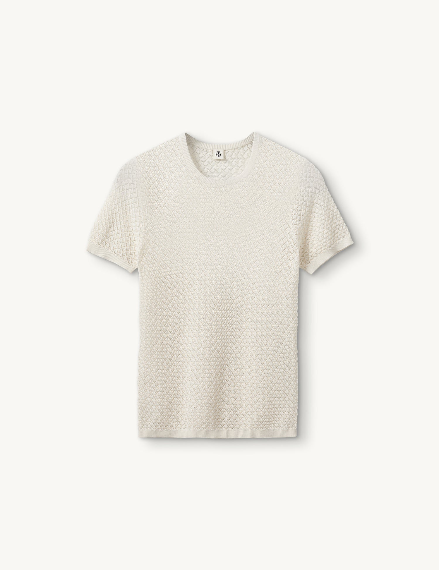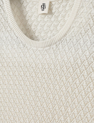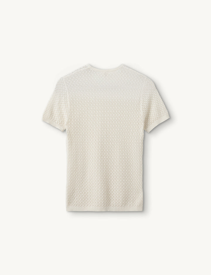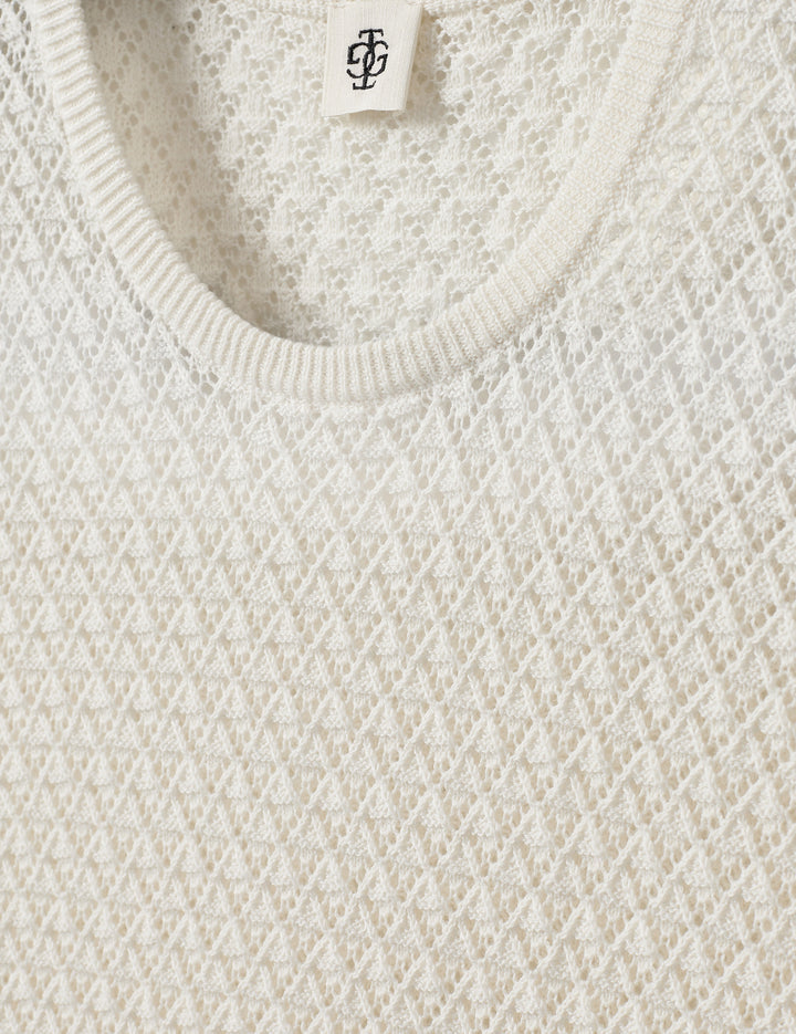 THE TANZANIA TEE IS MADE FROM SOFT WHITE COTTON AND FEATURES DELICATE POINTELLE KNIT DETAILING, MAKING IT THE PERFECT SUMMER WARDROBE ESSENTIAL.