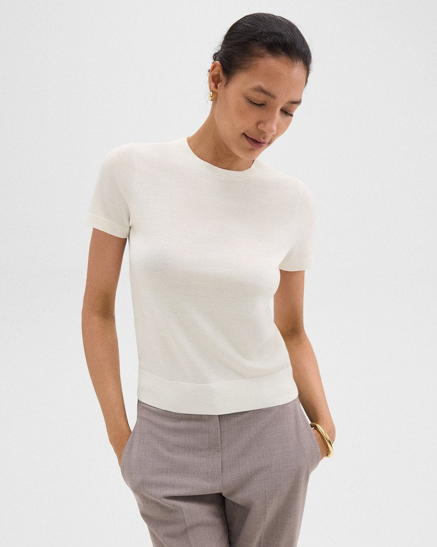 Theory - Basic Tee in Regal Wool Ivory