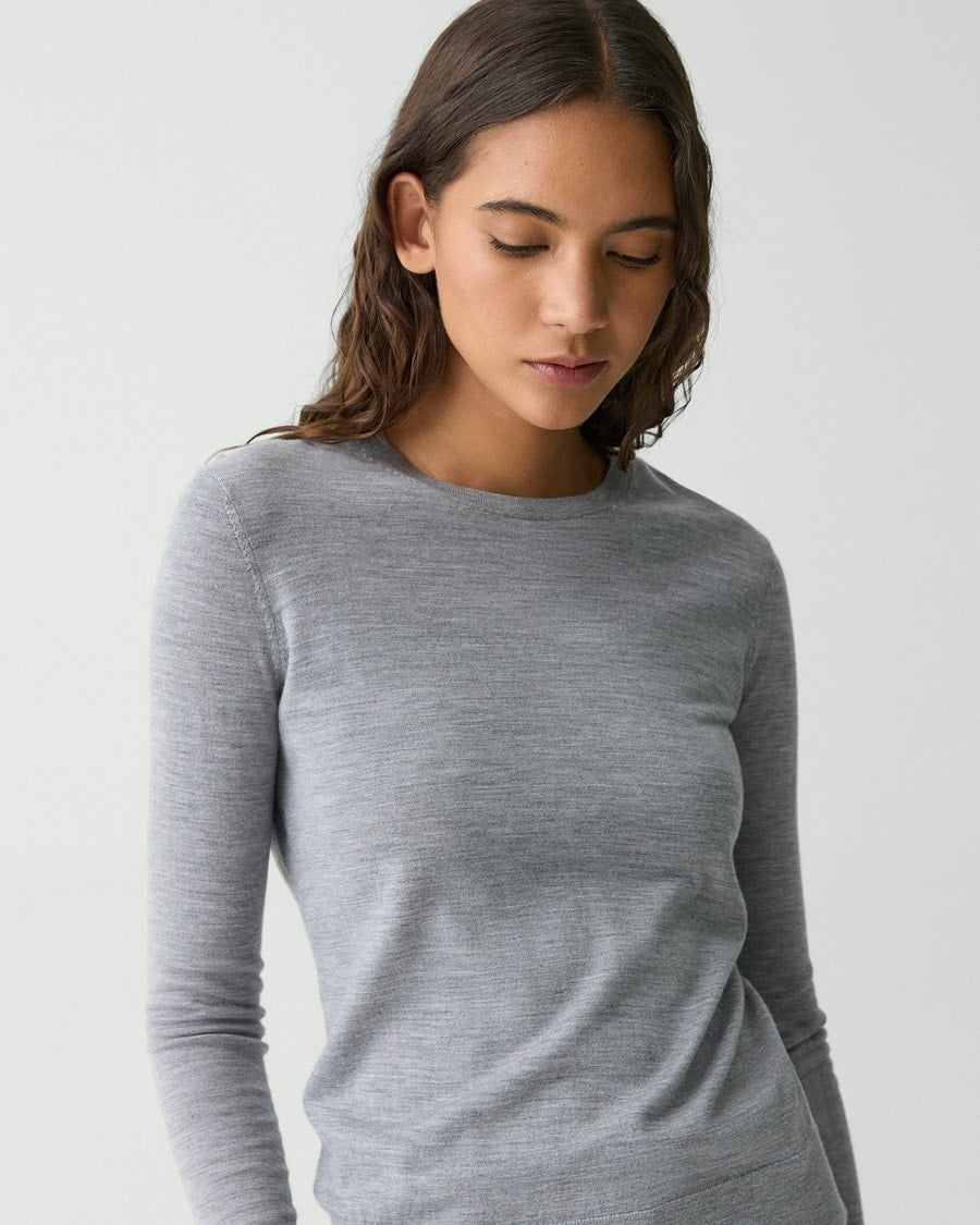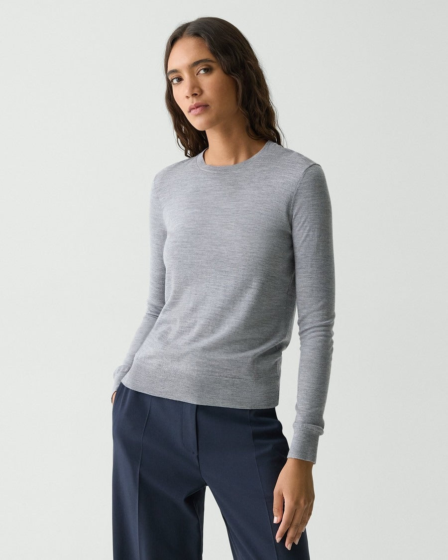 Theory - Crewneck Sweater in Regal Wool Cool Heather Grey