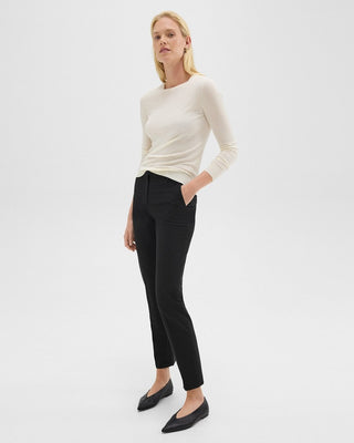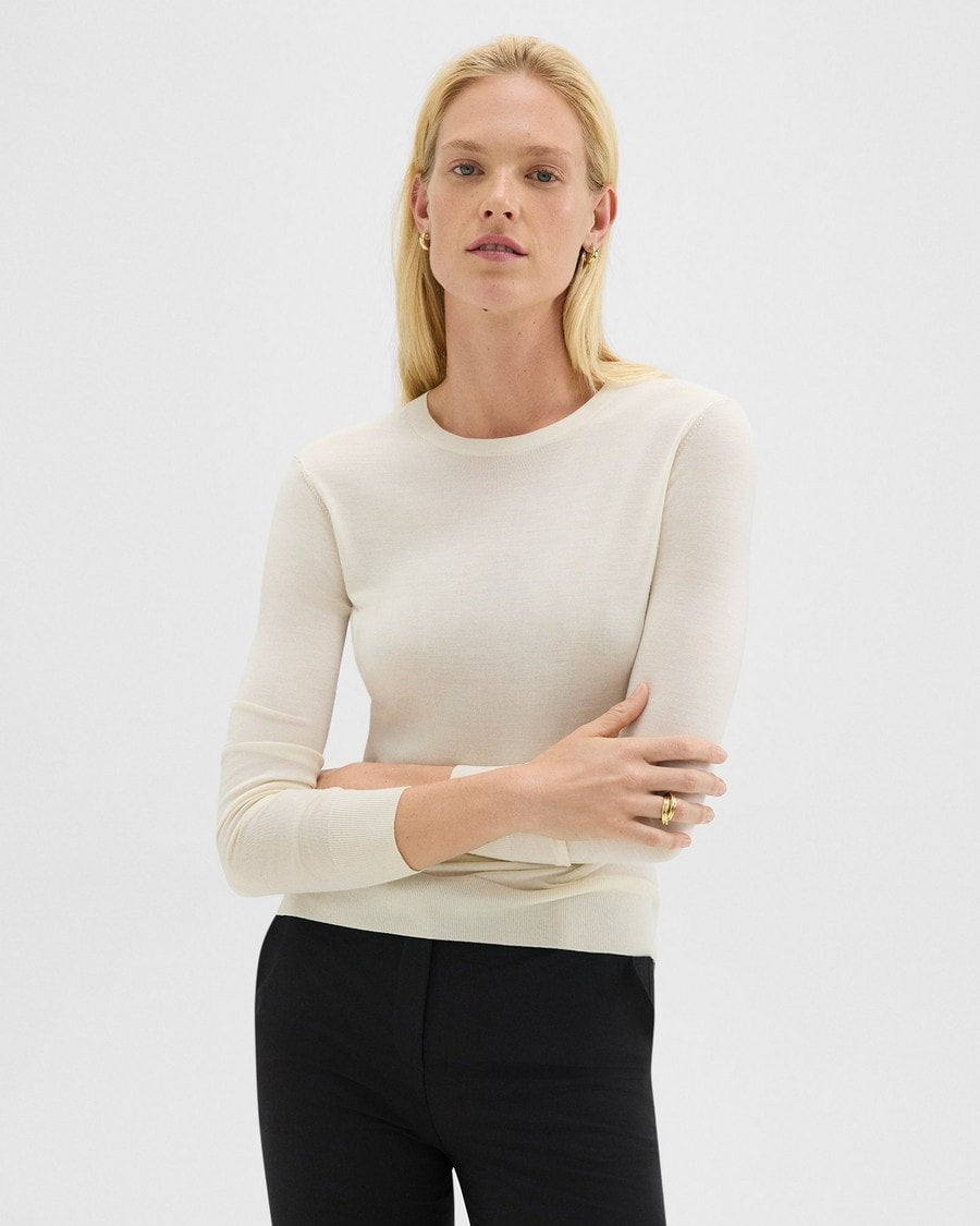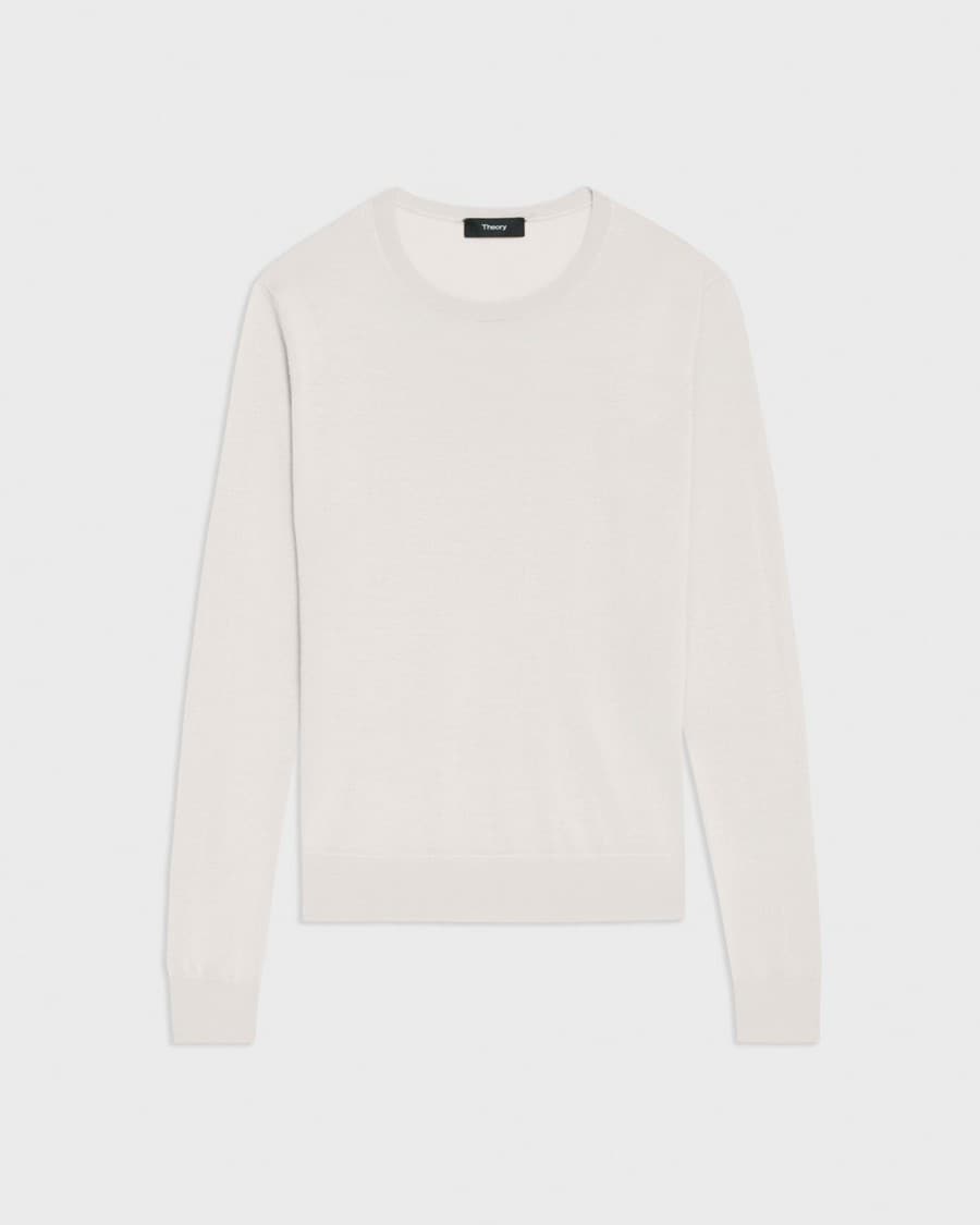 This long-sleeve, crewneck sweater is detailed with delicate ribbed trim at the neck, hem, and cuffs. Designed to be a foundation piece in your wardrobe, it’s knit in Italy from fine-gauge merino wool and available year-round.