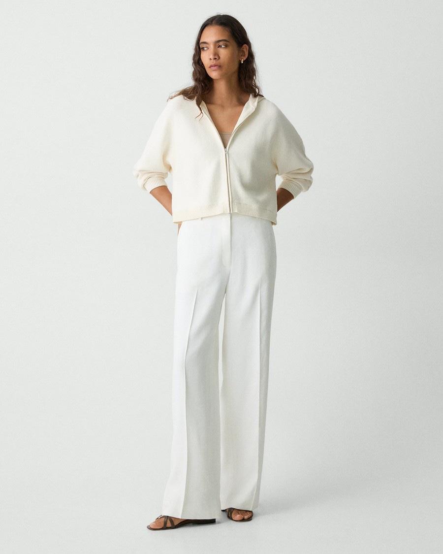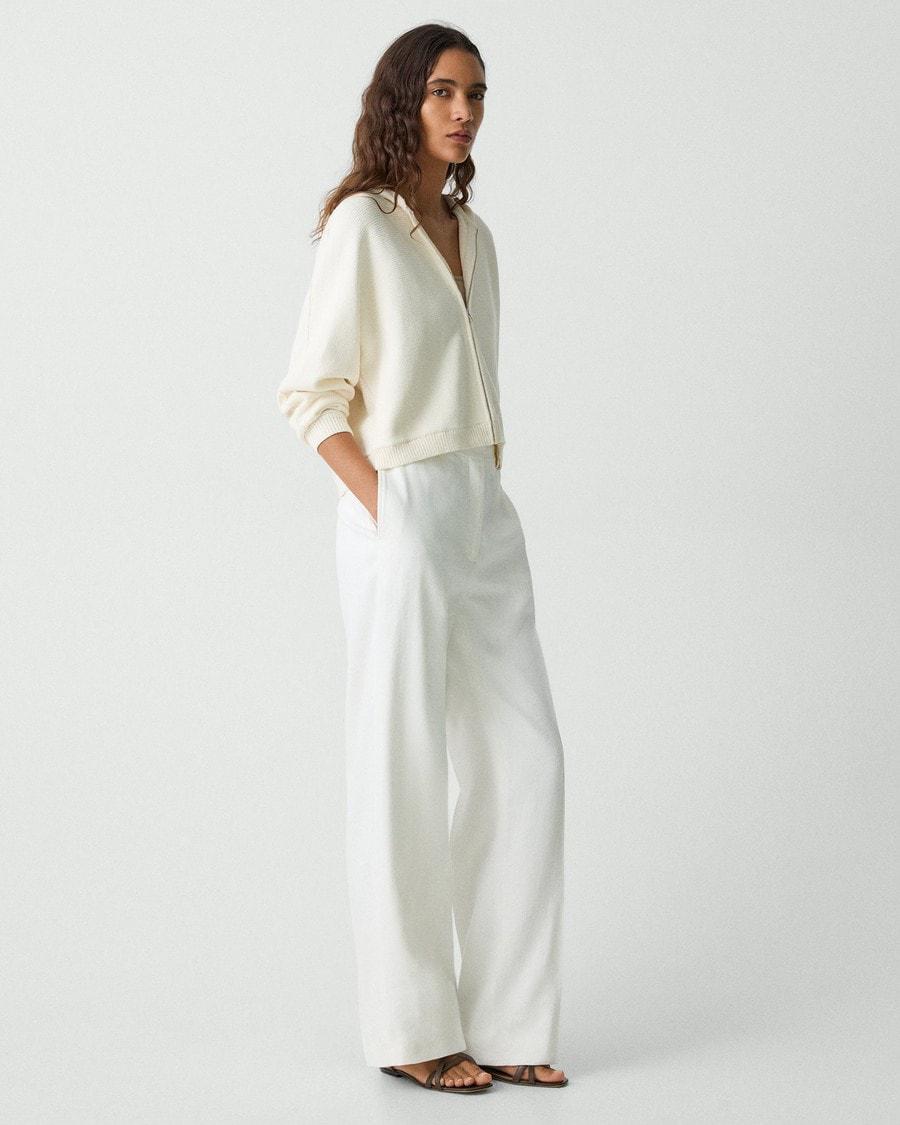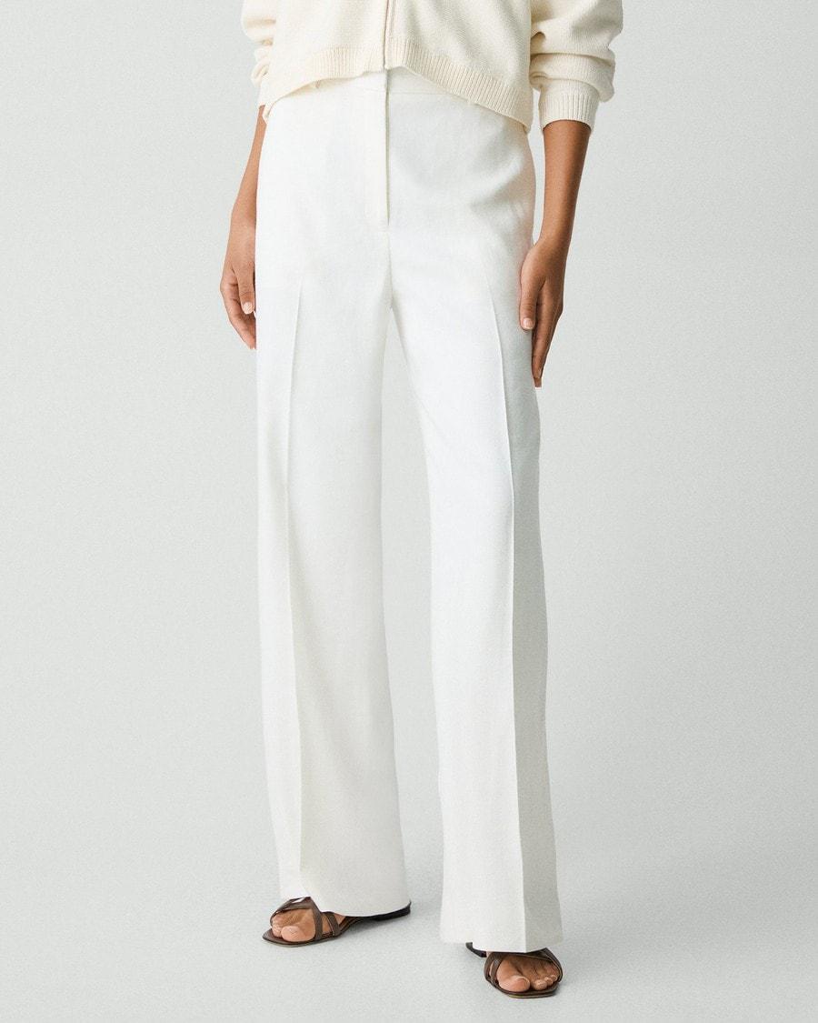 A summer option that can be dressed up or down, our bestselling trousers come in a full length with a high waistline and relaxed straight leg. Bearing a subtle shine and incredible softness, it is cut from an elevated stretch twill produced by an Italian fabric mill, using certified flax sourced from Europe and blended with viscose made from certified responsibly sourced wood pulp.